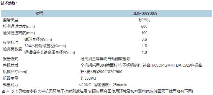 4.具有產(chǎn)品效應(yīng)自動學(xué)習(xí)功能,自動學(xué)習(xí)三次即可獲得最佳使用參數(shù)。如含糖的產(chǎn)品、含鹽份的食品,如:肉制品等,都會對金屬檢測儀產(chǎn)生類似金屬的信號,這種效應(yīng)會影響檢測效果,此功可自動削減產(chǎn)品效應(yīng),達(dá)到最佳效果。