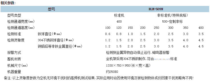 產(chǎn)品簡介:又名食品安檢機,食品金屬探測機.該型號金屬檢測儀是連之新公司在原有509型的技術(shù)基礎(chǔ)上改進升級產(chǎn)品,其電路和外觀設(shè)計吸收了國外同類產(chǎn)品先進技術(shù)而設(shè)計制作,采用液晶屏及數(shù)碼貼片電路設(shè)計制作,產(chǎn)品性能更穩(wěn)定、性價比高、外觀制作工藝精美,能檢測食品、日化加工行業(yè)常見的所有金屬異物。