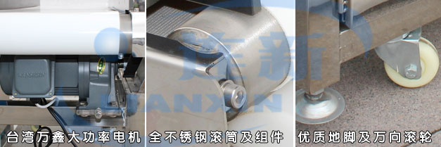 ■ 整機(jī)機(jī)架采用足3厘鏡面不銹鋼材料,傳送帶采用食品級(jí)白色PVC或PU皮帶,采用激光切割焊接技術(shù),日本品牌軸承及6厘厚無(wú)縫鋼管滾筒,采用日本三星同步帶及同步輪制作,德資JSCC品牌電機(jī);